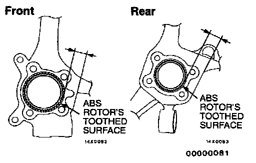 The clearance between the wheel speed sensor and the ABS rotor's toothed surface is not adjustable, but measure the distance between the sensor installation surface and the ABS rotor's toothed surface.