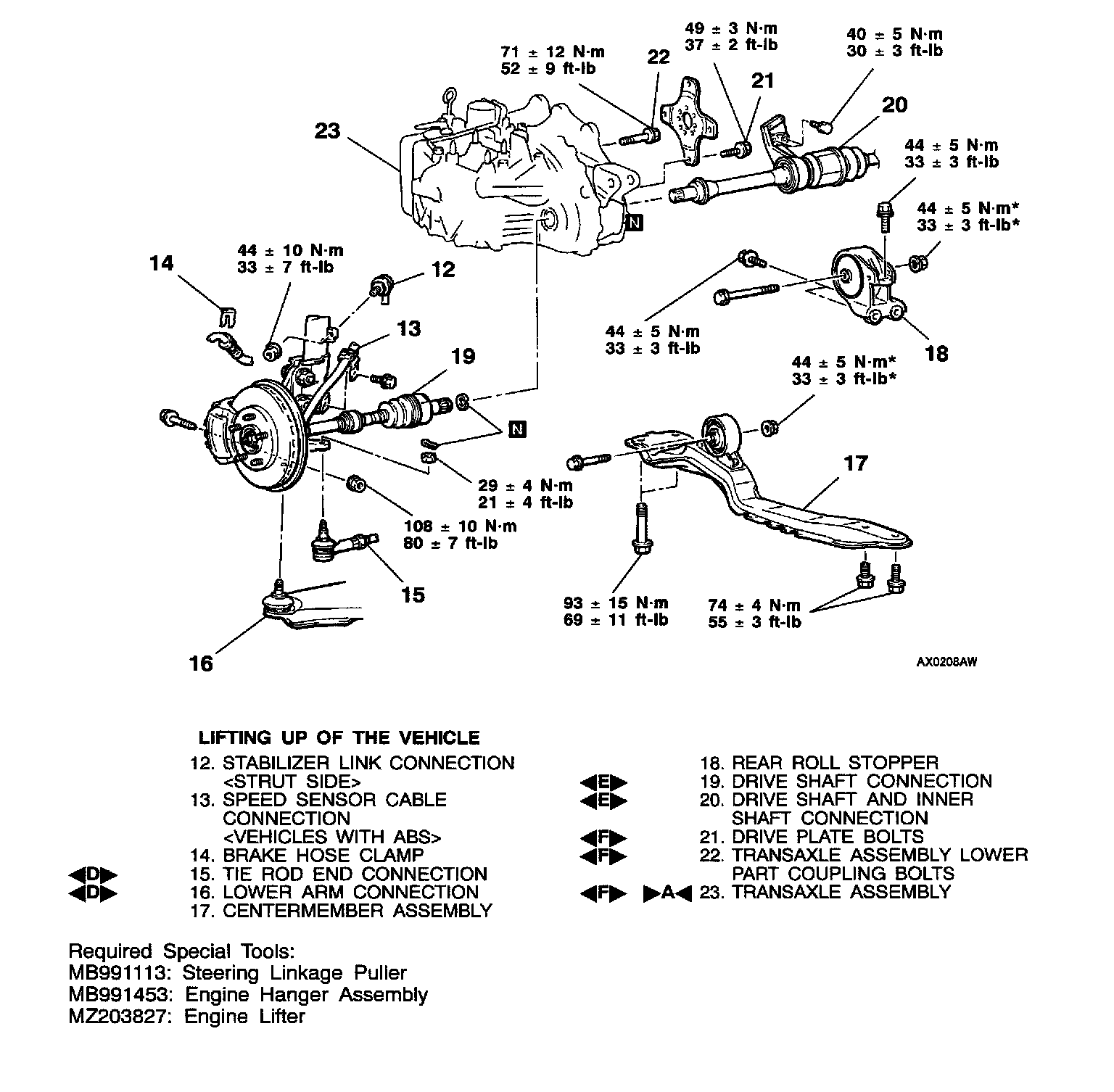 CAUTION: *:Indicates parts which should be temporarily tightened, and then fully tightened after placing the vehicle horizontally and loading the full weight of the engine on the vehicle body.