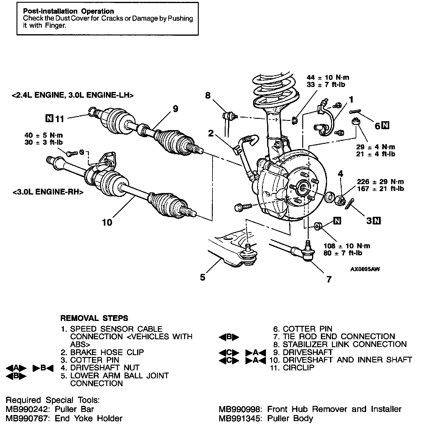 For vehicles with ABS, be careful when handling the projection at the tip of the