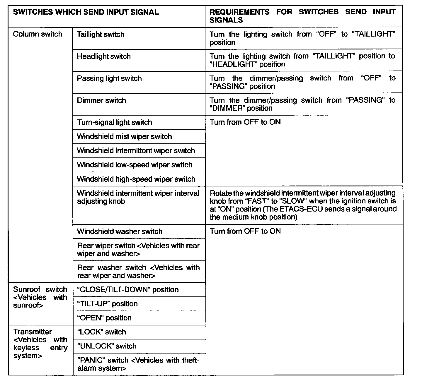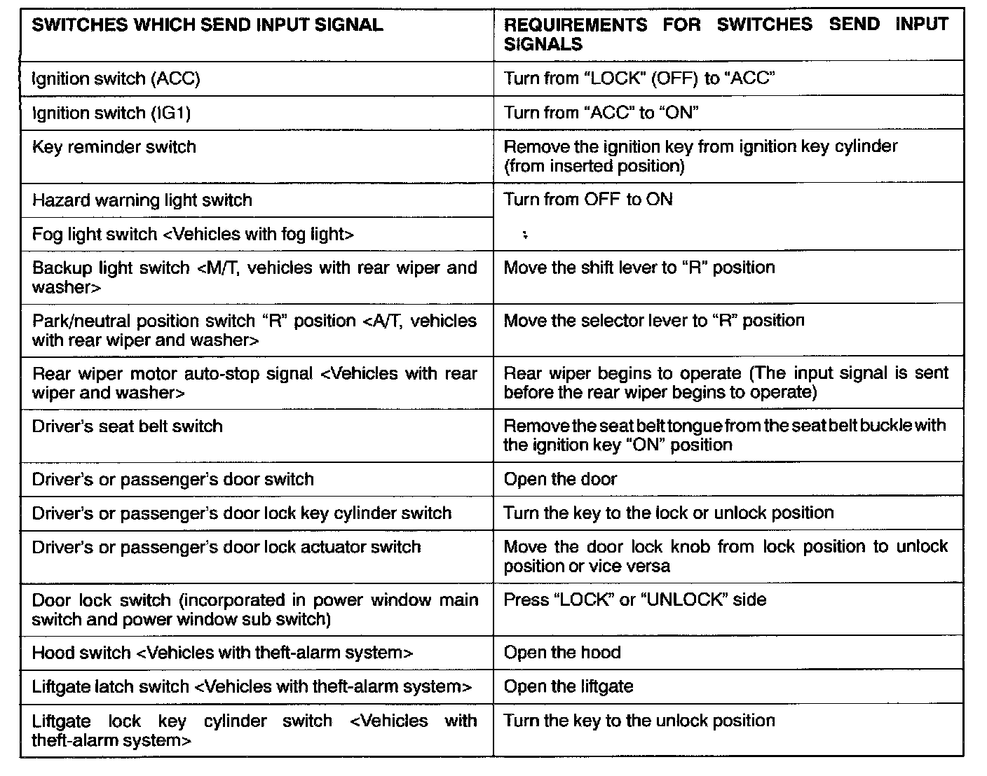 Requirements for which switches send input signals