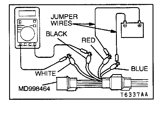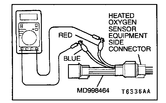1. Disconnect the heated oxygen sensor connector and connect special tool MD998464 to the connector on the heated oxygen sensor side.