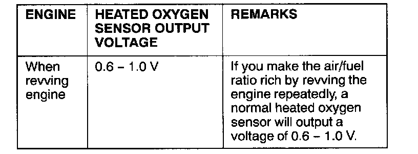 2. While repeatedly revving the engine, measure the heated oxygen sensor output voltage.