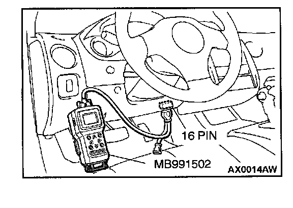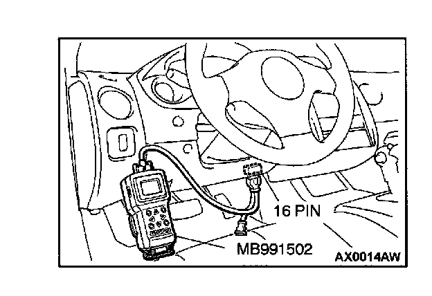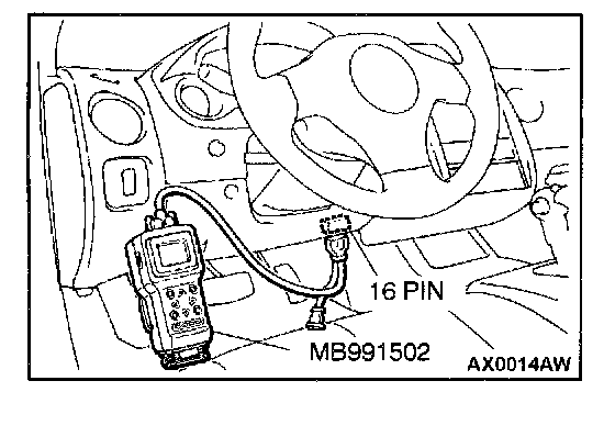 CAUTION: To prevent damage to scan tool MB991502, always turn the ignition switch to "LOCK" (OFF) position before connecting or disconnecting scan tool MB991502.