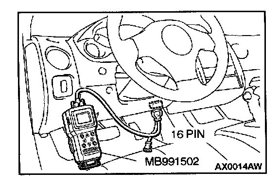 CAUTION: To prevent damage to scan tool MB991502, always turn the ignition switch to "LOCK" (OFF) position before connecting or disconnecting scan tool MB991502.