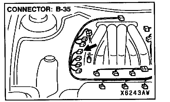 The ignition timing should retard more when knock sensor connector B-35 is disconnected than when it is connected.