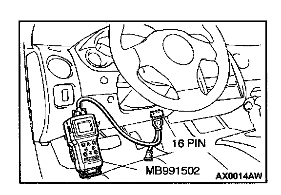 CAUTION: To prevent damage to scan tool MB991502, always turn the ignition switch to "LOCK" (OFF) position before connecting or disconnecting scan tool MB991502.