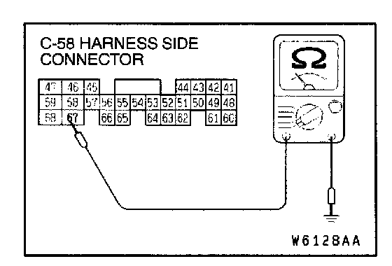 If open circuit, repair the harness wire between the ECM connector C-58 and the ground. Then confirm that the malfunction symptom is eliminated.