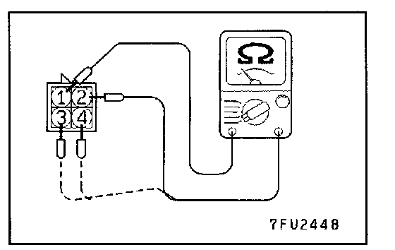 2. Measure the resistance between injector side connector terminals 1 and 2 (No.1 injector), 1 and 3 (No.3 injector), 1 and 4 (No.5 injector).