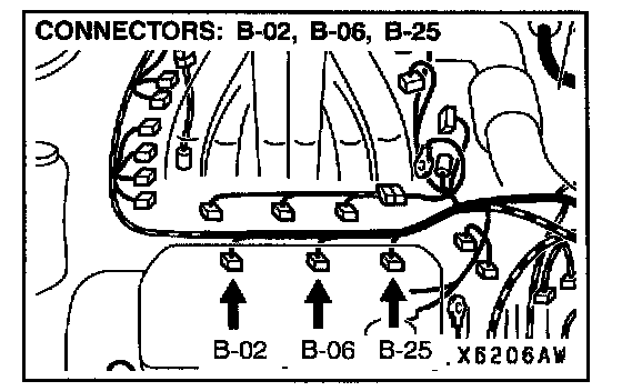 STEP 12. Check harness connector B-02, B-06, B-25 at the left bank injector for damage.
