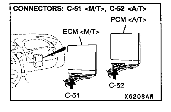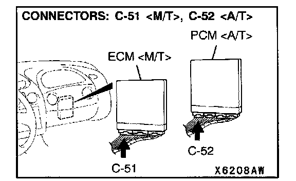 Connectors: B-27, C-51, C-58 <M/T>, C-52, C-55 <A/T>: