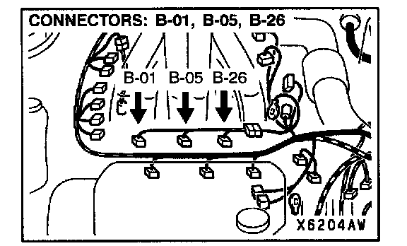 STEP 8. Check harness connector B-01 or B-05 or B-26 at the right bank injector for damage.