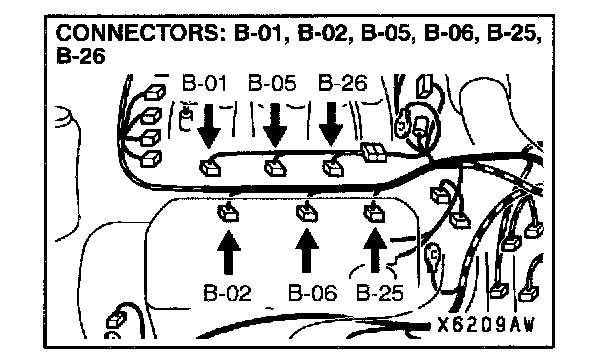 If harness connectors B-02, B-06, B-25 are damaged, repair or replace it.