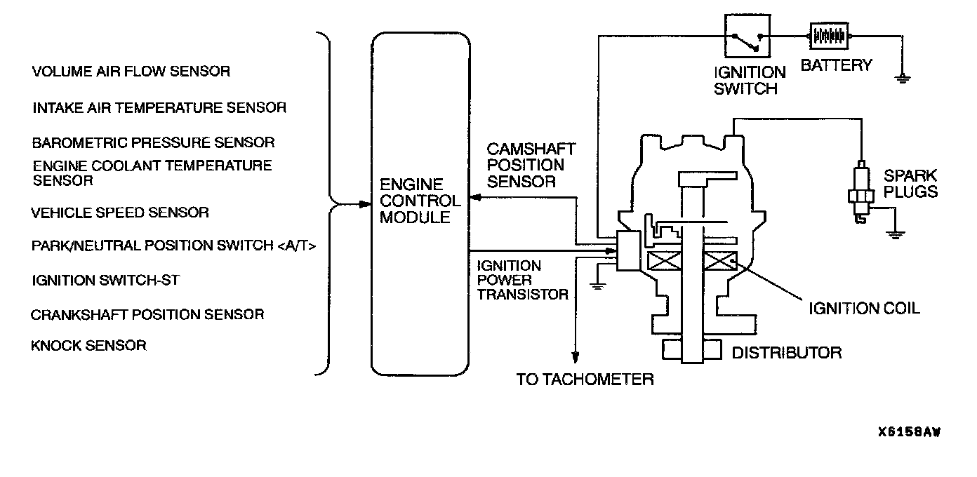 Interruption of the primary current flowing in the primary side of the ignition coil generates high voltage in the secondary side of the ignition coil. The high voltage thus generated is directed by the distributor to the applicable spark plug. The engine firing order is 1 - 2 - 3 - 4 - 5 - 6. On application of high voltage, the spark plug generates a spark to ignite the compressed air fuel mixture in the combustion chamber.