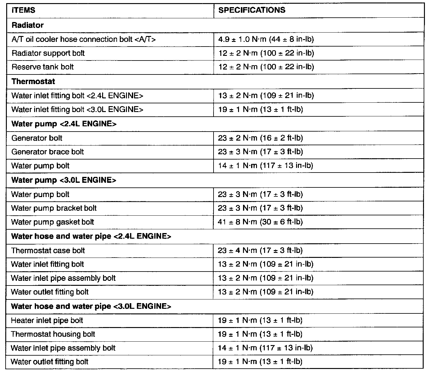 Torque Specifications