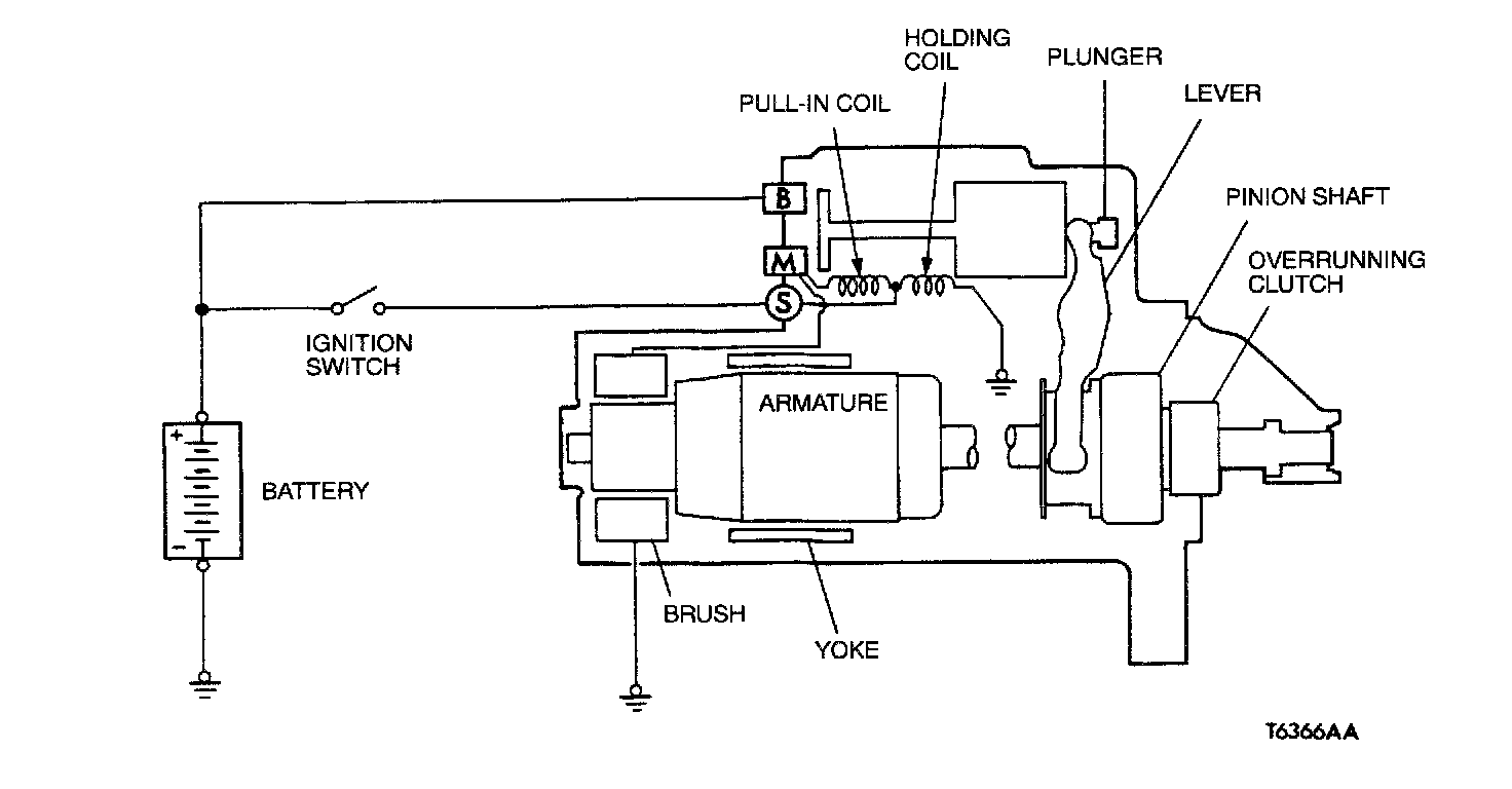 On the other hand, attracting the plunger will turn on the magnetic switch, allowing the B terminal and M terminal to conduct. Thus, current flows to engage the starter motor.