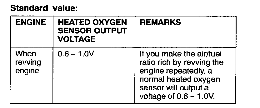2. While repeatedly revving the engine, measure the heated oxygen sensor output voltage.