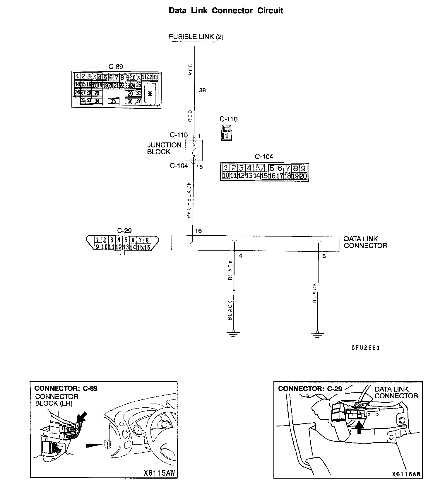 - A battery positive voltage is applied on the data link connector power terminal (terminal 16). The ground terminals (terminal 4, 5) are grounded to the vehicle body.