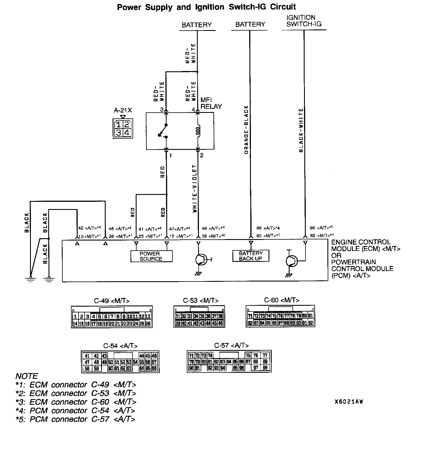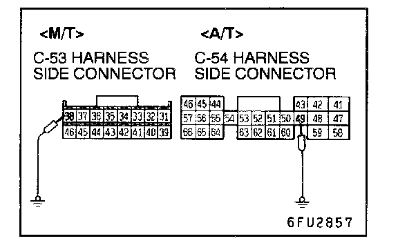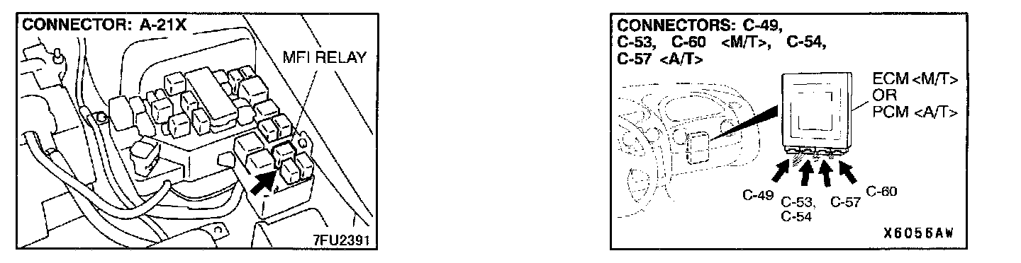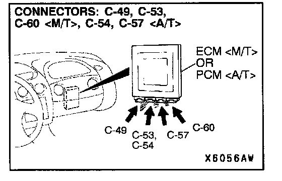 Connectors: A-21X, C-49, C-53, C-60 <M/T>, C-54, C-57 <A/T>: