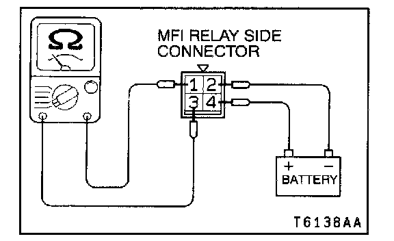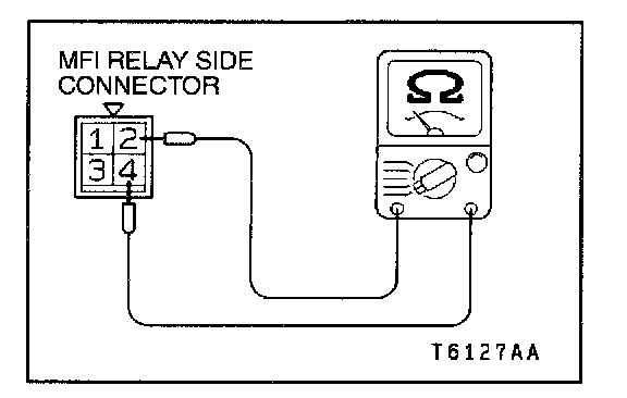 2. Check for continuity between the MFI relay terminals 2 and 4.