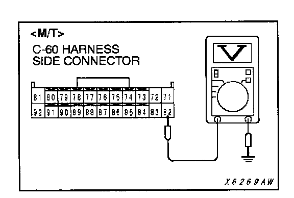 - When the ignition switch is turned "ON," the battery positive voltage is applied to the ECM (terminal 82)