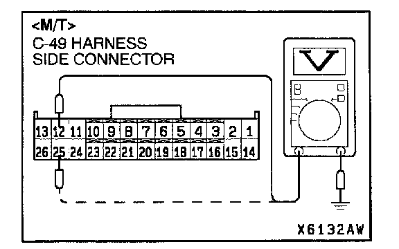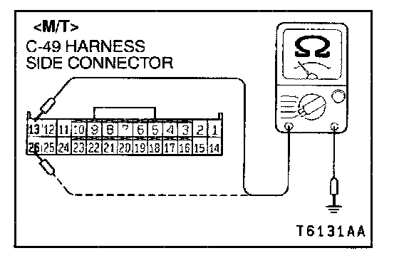 2. Check for continuity between terminals 13, 26 (C-49) and ground