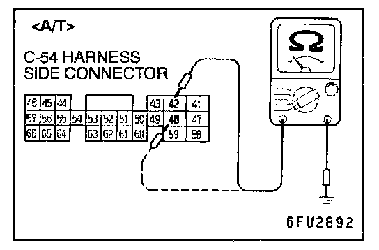 Check for continuity between terminals 42, 48 (C-54) and ground .