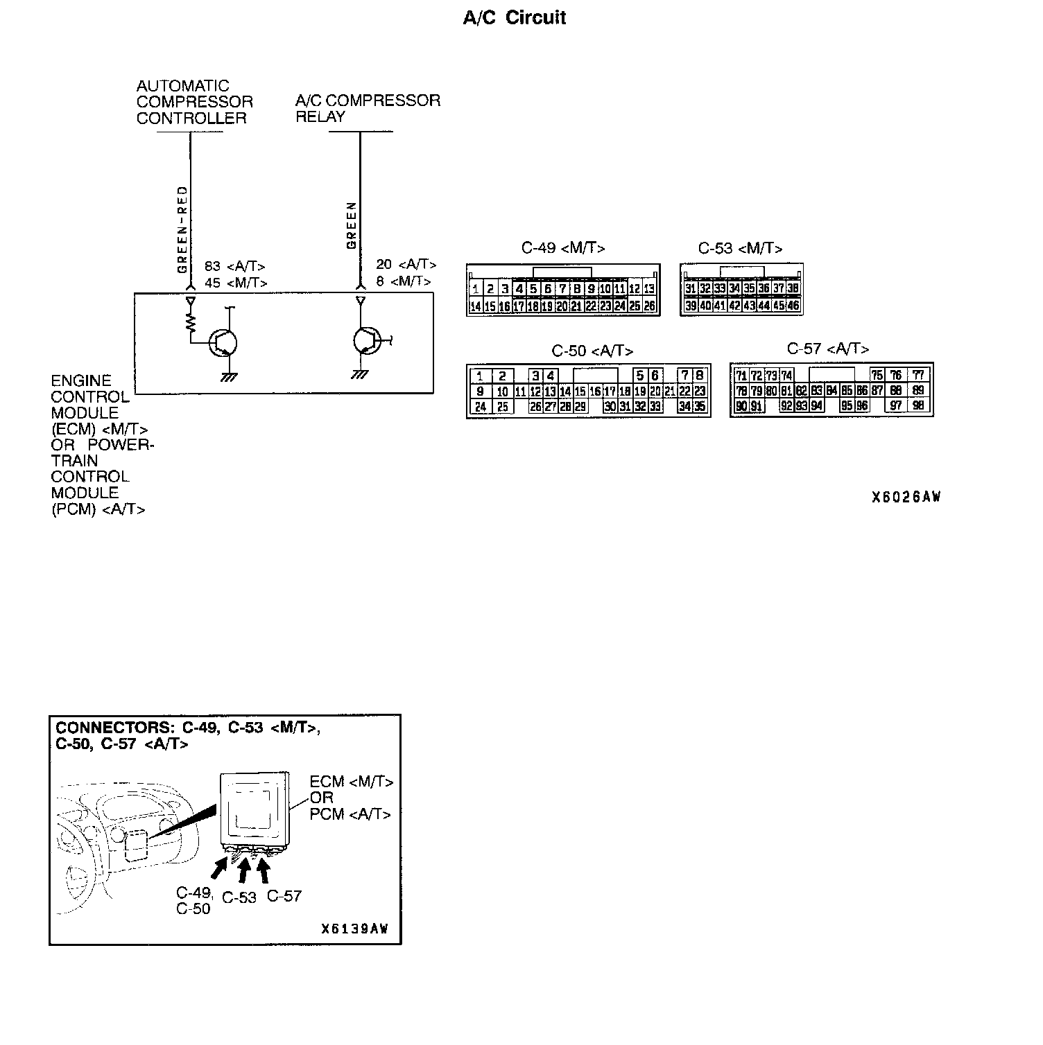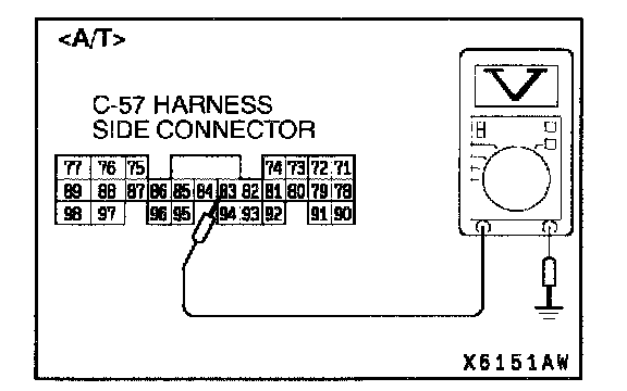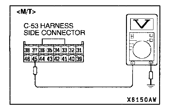 - When the A/C is ON, the battery positive voltage is applied on the ECM (terminal 45)