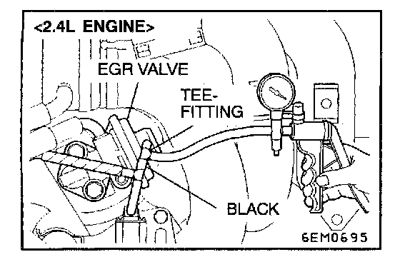 1. Disconnect the vacuum hose (black) from the EGR valve, and then connect a hand vacuum pump via the Tee-fitting.