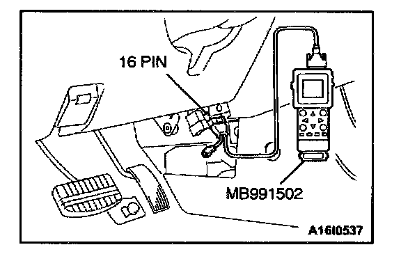 CAUTION: To prevent damage to scan tool MB991502, always turn the ignition switch to "LOCK" (OFF) position before connecting or disconnecting the scan tool MB991502.