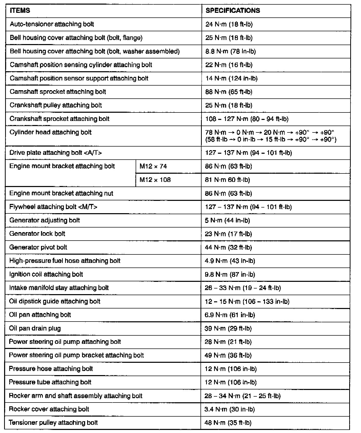 Fastener Tightening Specifications