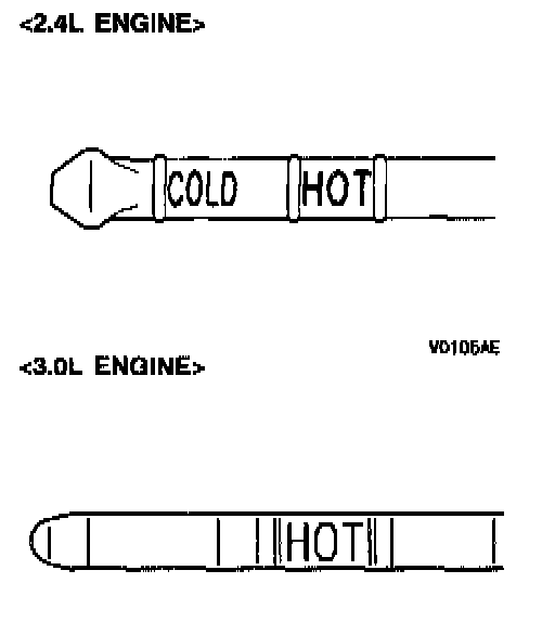 12. Check that the A/T fluid level is at the "COLD" mark on the dipstick. If the level is lower than this, pour in more A/T fluid.