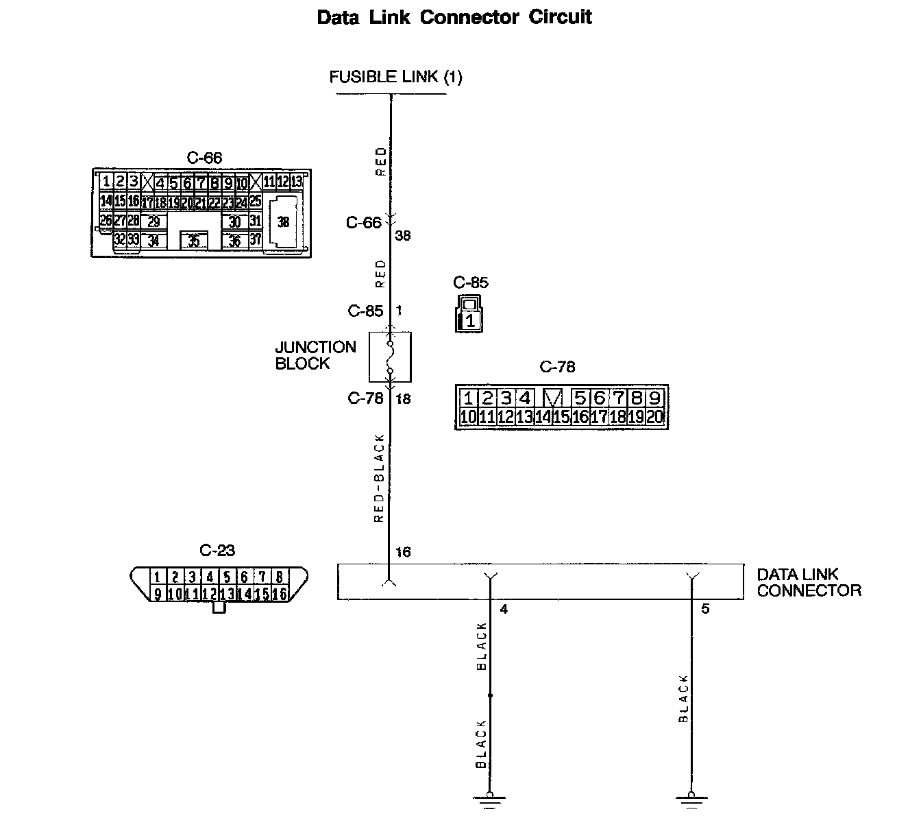 - A battery positive voltage is applied on the data link connector power terminal (terminal 16). The ground terminals (terminal 4, 5) are grounded to the vehicle body.