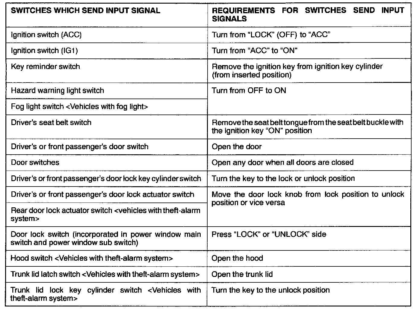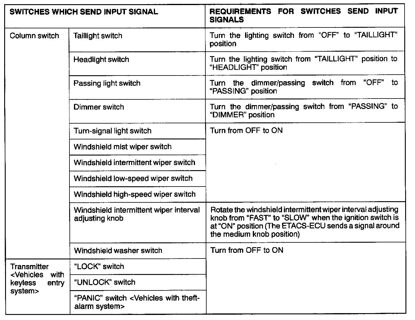 Input Signal Check FunctionThis mode checks the switch input signals to each ECU incorporated in the SWS.