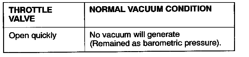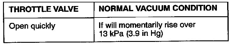 2. Regarding the engine in cold and hot conditions, check the condition of vacuum when engine rpm is increased by opening the throttle valve quickly.
