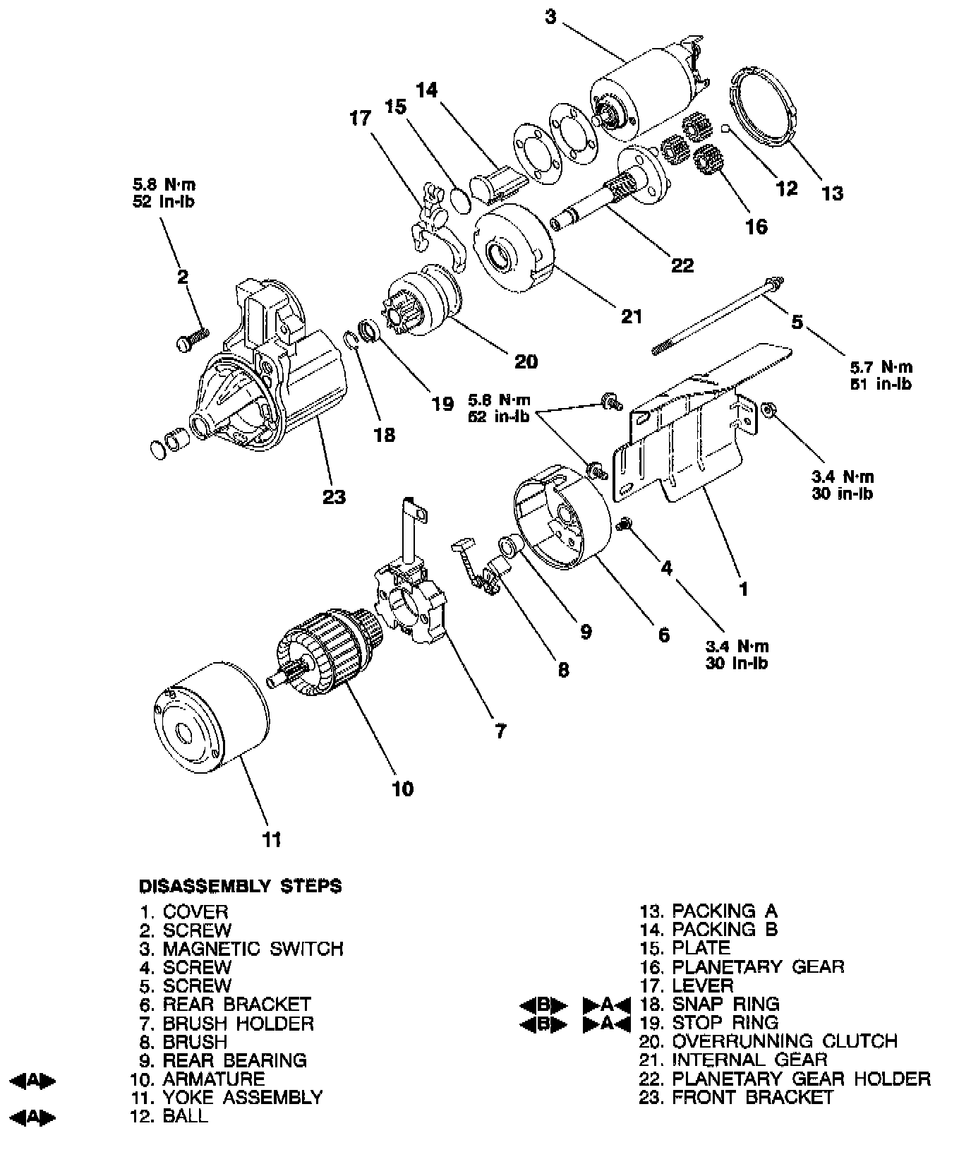 CAUTION: When removing the armature, take care not to lose the ball (which is used as a bearing) in the armature end.