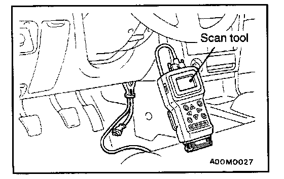 1. Connect the scan tool MB991502 to the data link connector.