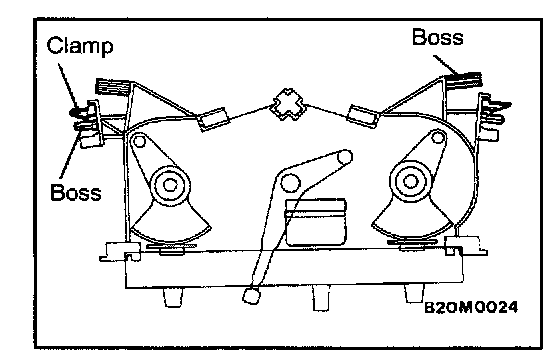 1. Cut off the bosses and clips shown before installing a new heater control assembly.