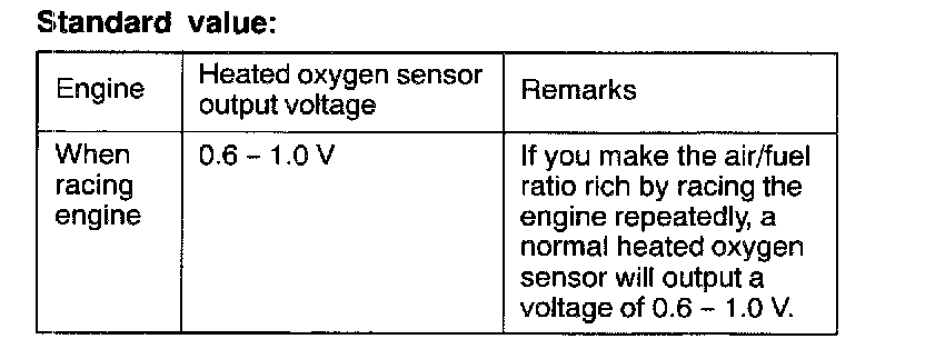7. While repeatedly racing the engine, measure the heated oxygen sensor output voltage.
