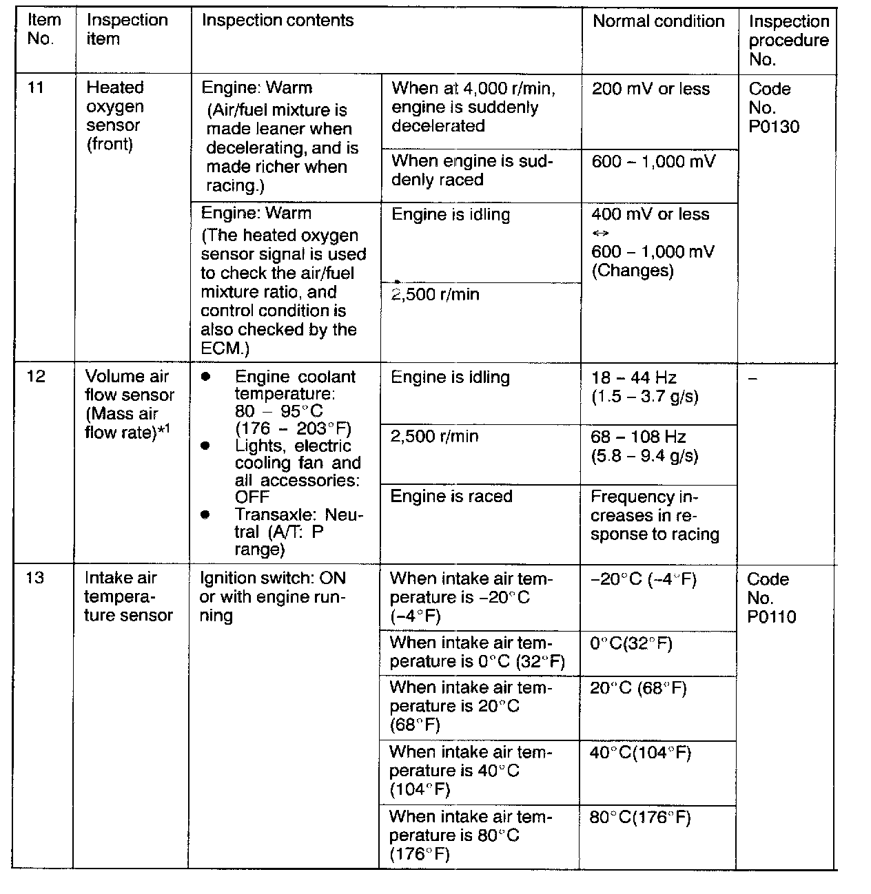 *1: In a new vehicle [driven approximately 500 km (300 mile) or less], the volume air flow sensor output frequency is sometimes 10% higher than the standard frequency