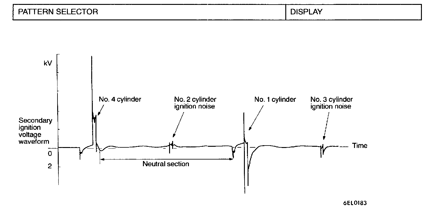 2. Because of the two-cylinder simultaneous ignition system, the waveforms for two cylinders in each group appear during wave form observation (No.1 cylinder - No.4 cylinder, No.2 cylinder - No.3 cylinder).