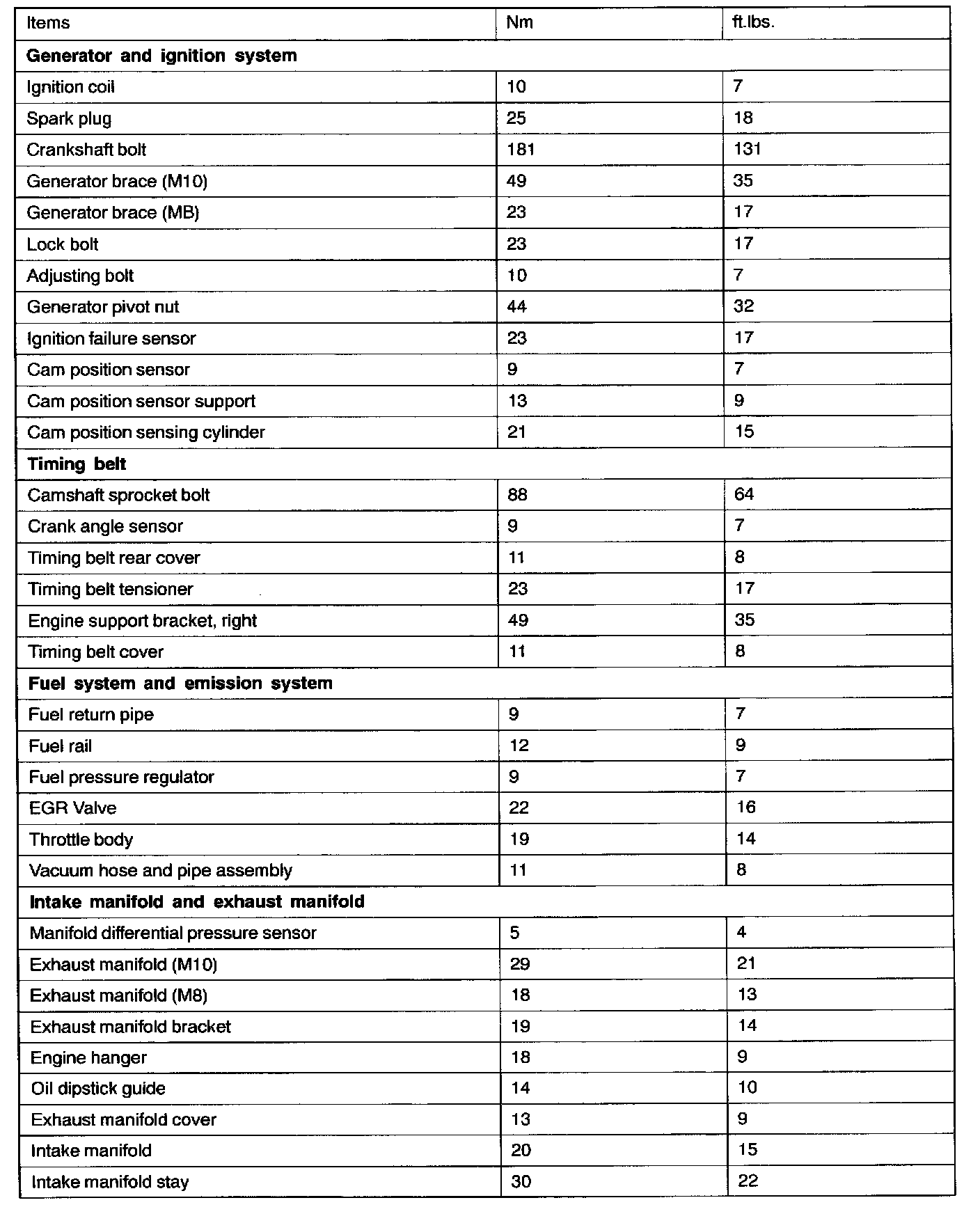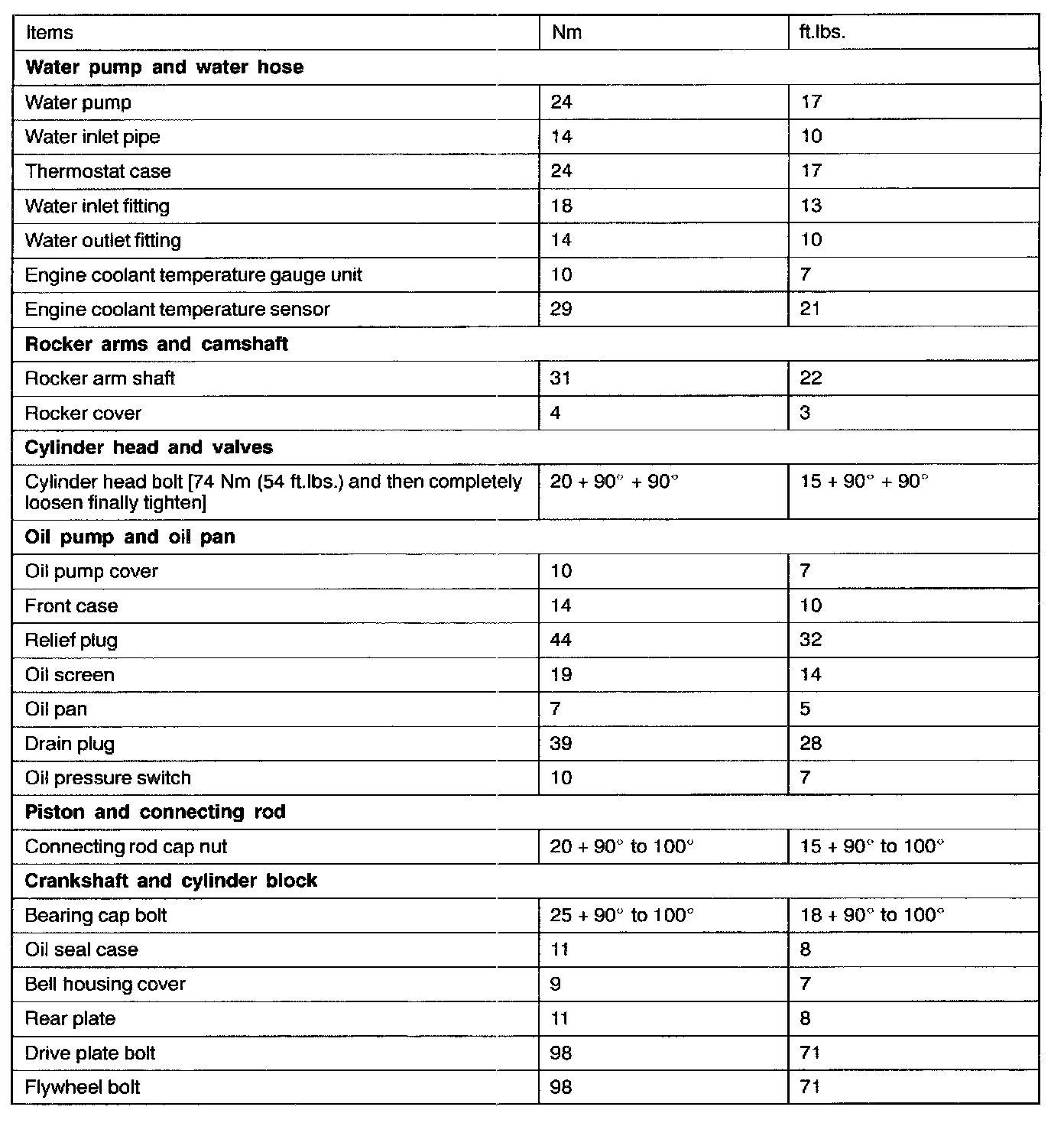 TORQUE SPECIFICATIONS