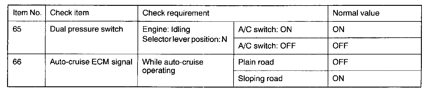 SERVICE DATA REFERENCE TABLE
