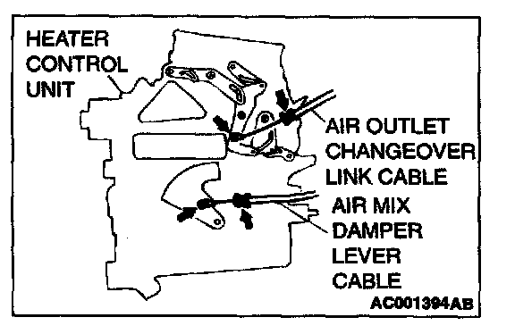 <> AIR MIX DAMPER LEVER CABLE, AIR OUTLET CHANGEOVER DAMPER LINK CABLE REMOVAL