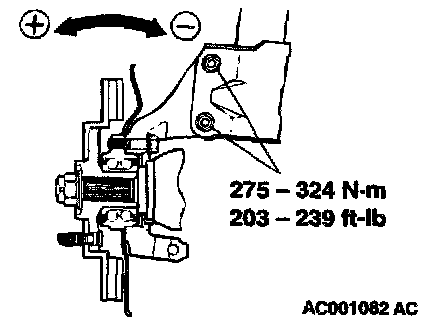 NOTE: For vehicles with aluminum type wheels, attach the camber/caster/kingpin gauge to the driveshaft by using special tool MB991004. Tighten special tool MB991004 to the same torque 226 ± 29 Nm (167 ± 21 ft. lbs.) as the driveshaft nut.