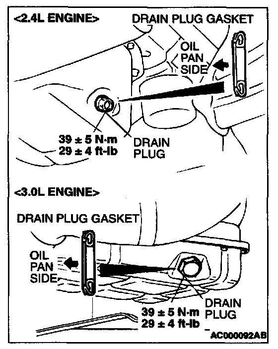 NOTE: Install the drain plug gasket so it faces in the direction shown in the illustration.