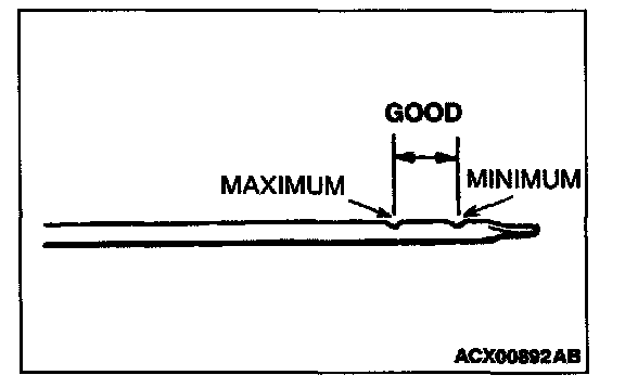 6. Stop the engine and check to ensure that the engine oil level is within the level range indicated on the dip stick.