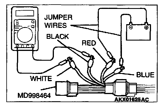 1. Disconnect the heated oxygen sensor connector and connect special tool MD998464 to the connector on the heated oxygen sensor side.