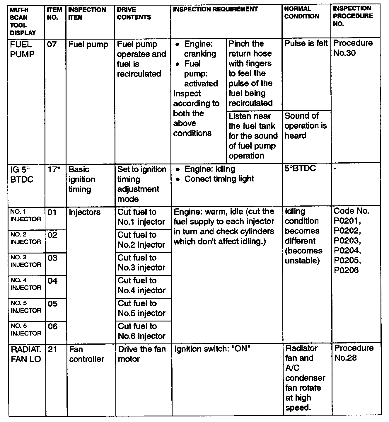 Actuator Test Reference Table Part 1: