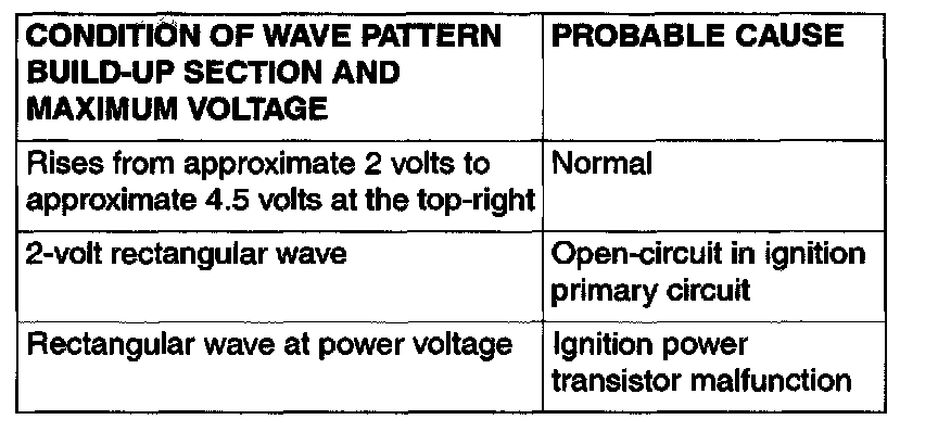 Point: Condition of wave pattern build-up section and maximum voltage (Refer to abnormal wave pattern examples 1 and 2).