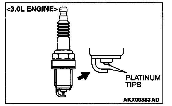 SPARK PLUGS (REPLACE)CAUTION: Platinum plugs are used on 3.0L engine. Use care not to damage the platinum tips of the platinum plugs. Do not attempt to adjust the gap on these plugs.